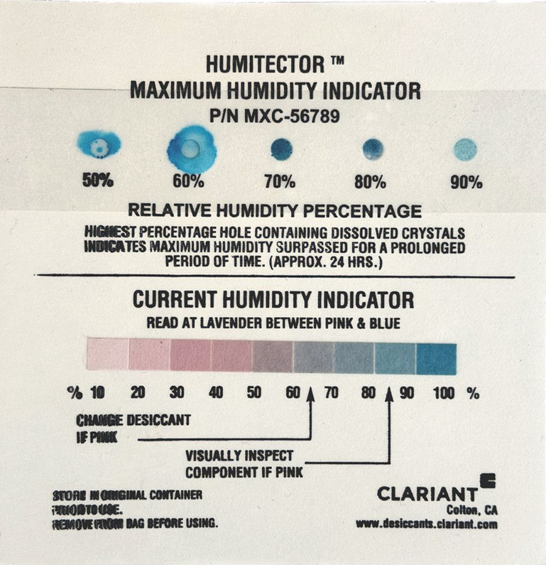irreversible Kristallpunkte für den eindeutigen Nachweis, ob während Lagerung oder Transport kritische Luftfeuchtigkeit über einen längeren Zeitraum (> 24 h) überschritten wurde